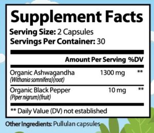 - Enhanced with Black Pepper: Our capsules contain 10mg of organic black pepper (Piper nigrum) extract. Black pepper is known to enhance the absorption of compounds, ensuring that the Ashwagandha is optimally utilized by the body.