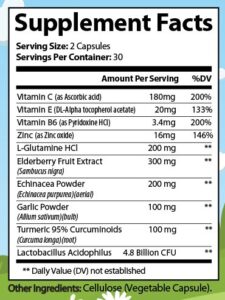 - Comprehensive Support: Beyond the basics, our formula boasts ingredients like Echinacea, known for its natural immune-enhancing effects, and Turmeric, recognized for its anti-inflammatory benefits. Additionally, the inclusion of Lactobacillus Acidophilus ensures a healthy gut, further boosting your immunity.