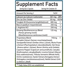Our private label Male Enhancement vitamin supplement contains a proprietary blend of ingredients that may help to support stamina and sexual libido. Some of the main ingredients in this supplement are Tongkat Ali, L-Arginine, vitamin b12, and Bioperine. This proprietary blend of ingredients makes for one of the best male enhancement supplements on the market.