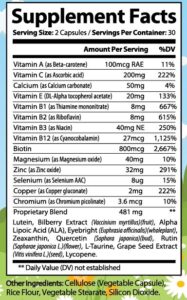 - Comprehensive Vision Support: With the power of Vitamin A, Lutein, and Bilberry Extract, our supplement aids in promoting healthy vision and supporting macular health, providing all-around care for your eyes.