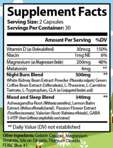 🌙 Restorative Sleep & Weight Support: Our formula works in harmony with your body’s night rhythms. While Melatonin ensures you drift into a rejuvenating sleep, our Night Burn Blend, featuring White Kidney Bean and Green Coffee Bean Extract, promotes natural weight management.